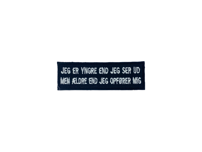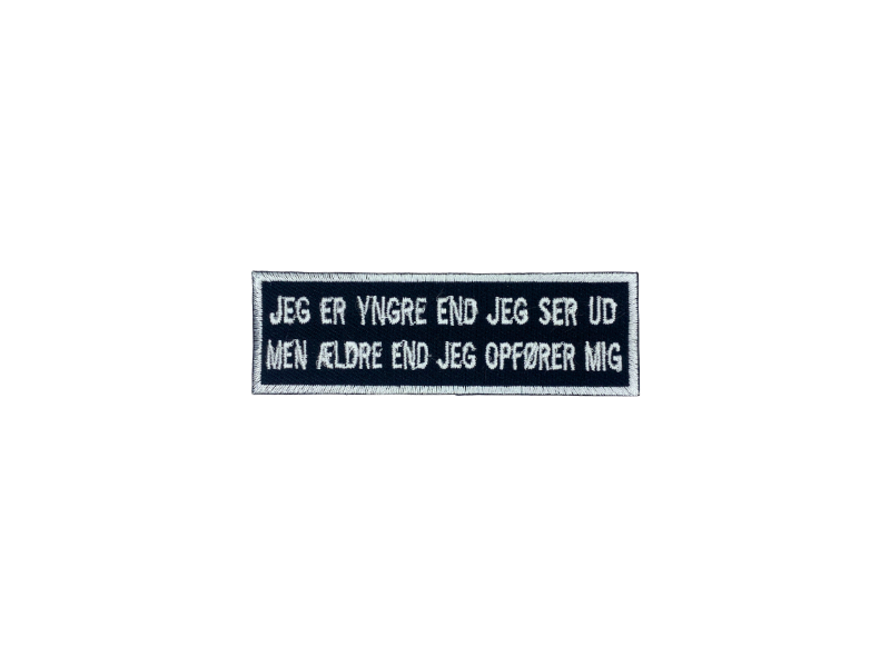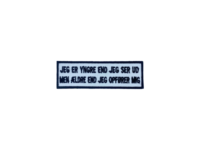 Jeg er yngere end jeg ser ud til Men ældre end jeg opfører mig- Patch Mærke